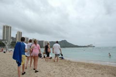 今日はいつもワイキキビーチの向こうにドーンと、当たり前のように見えるはずのダイアモンドヘッドさえ、見えない豪雨でした。(-_-;;